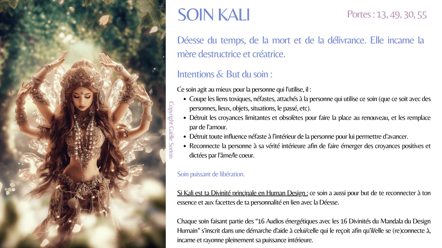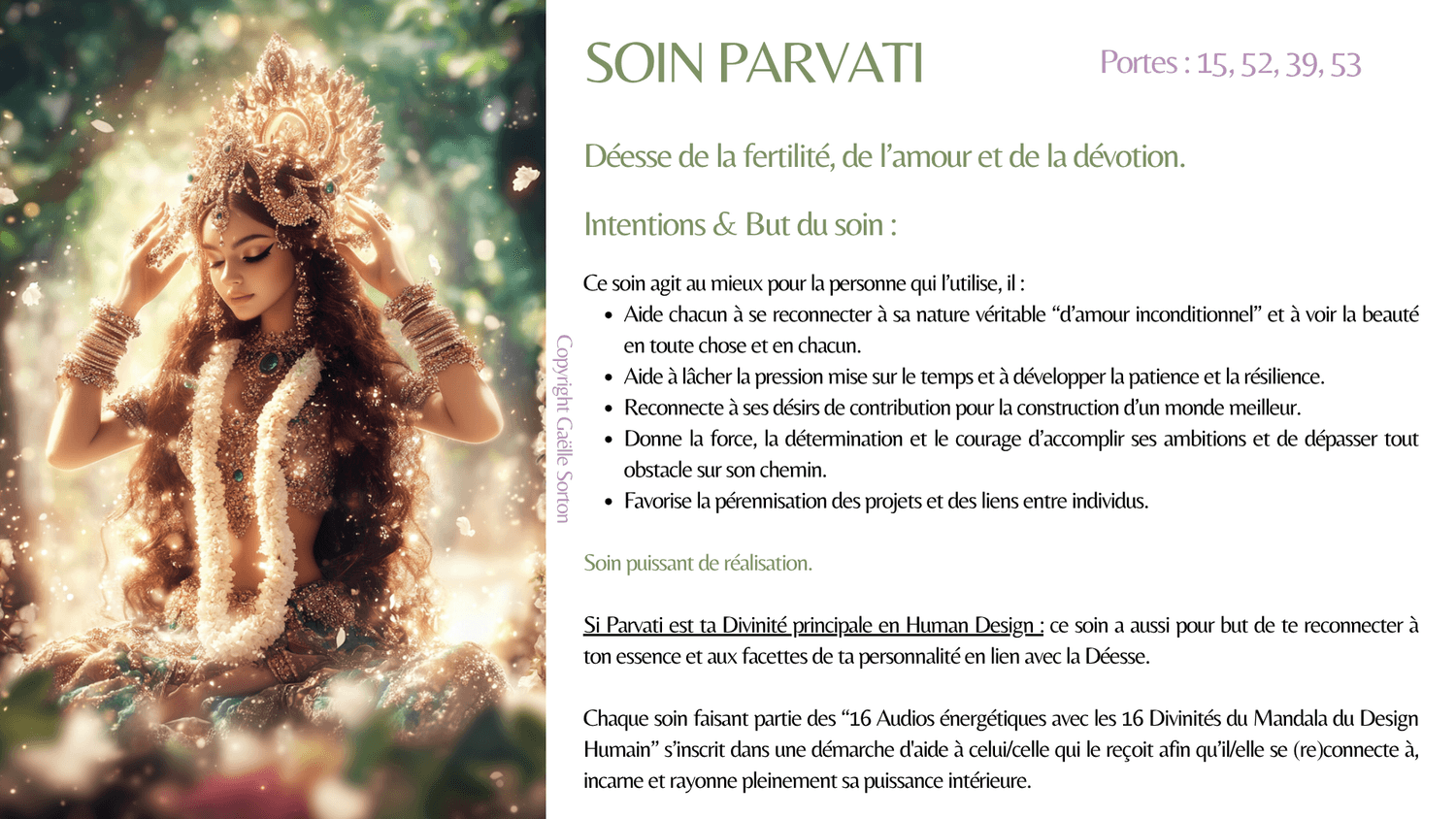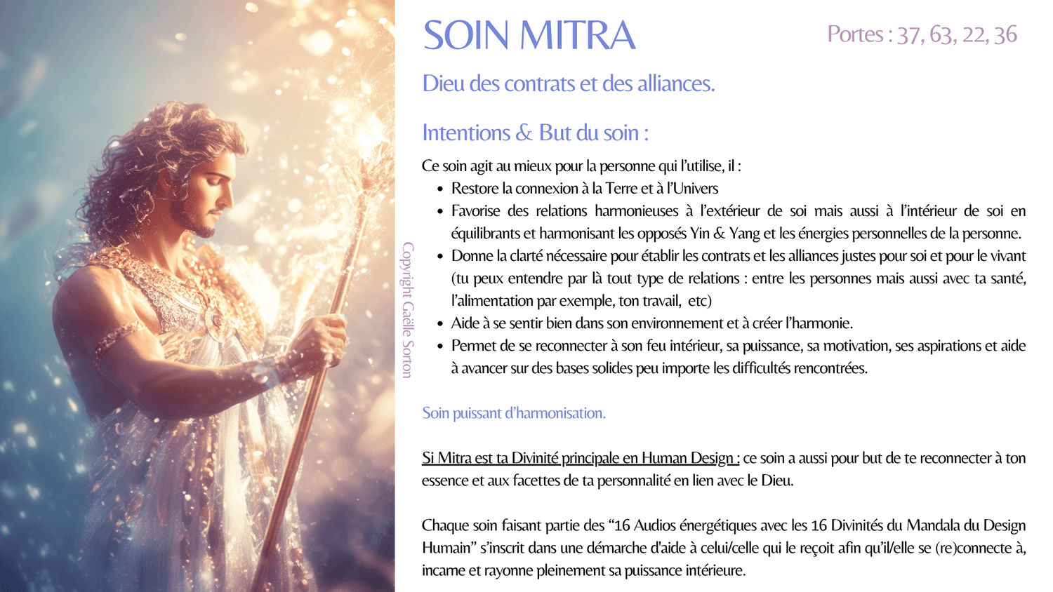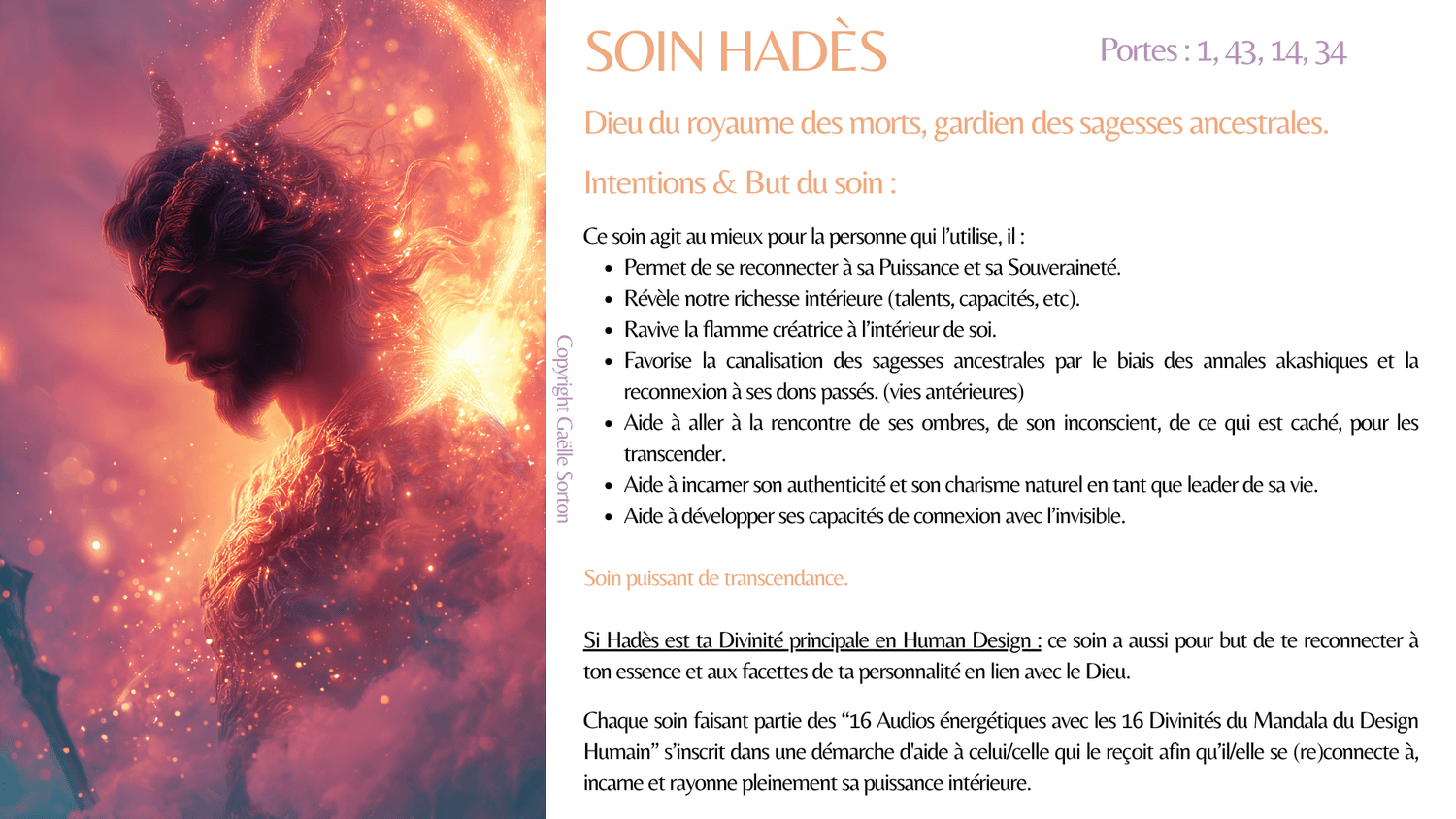 En plus des effets du soin, celui de ta Divinité principale a pour but de te reconnecter à ton essence et aux facettes de ta personnalité (forces) en lien avec elle.