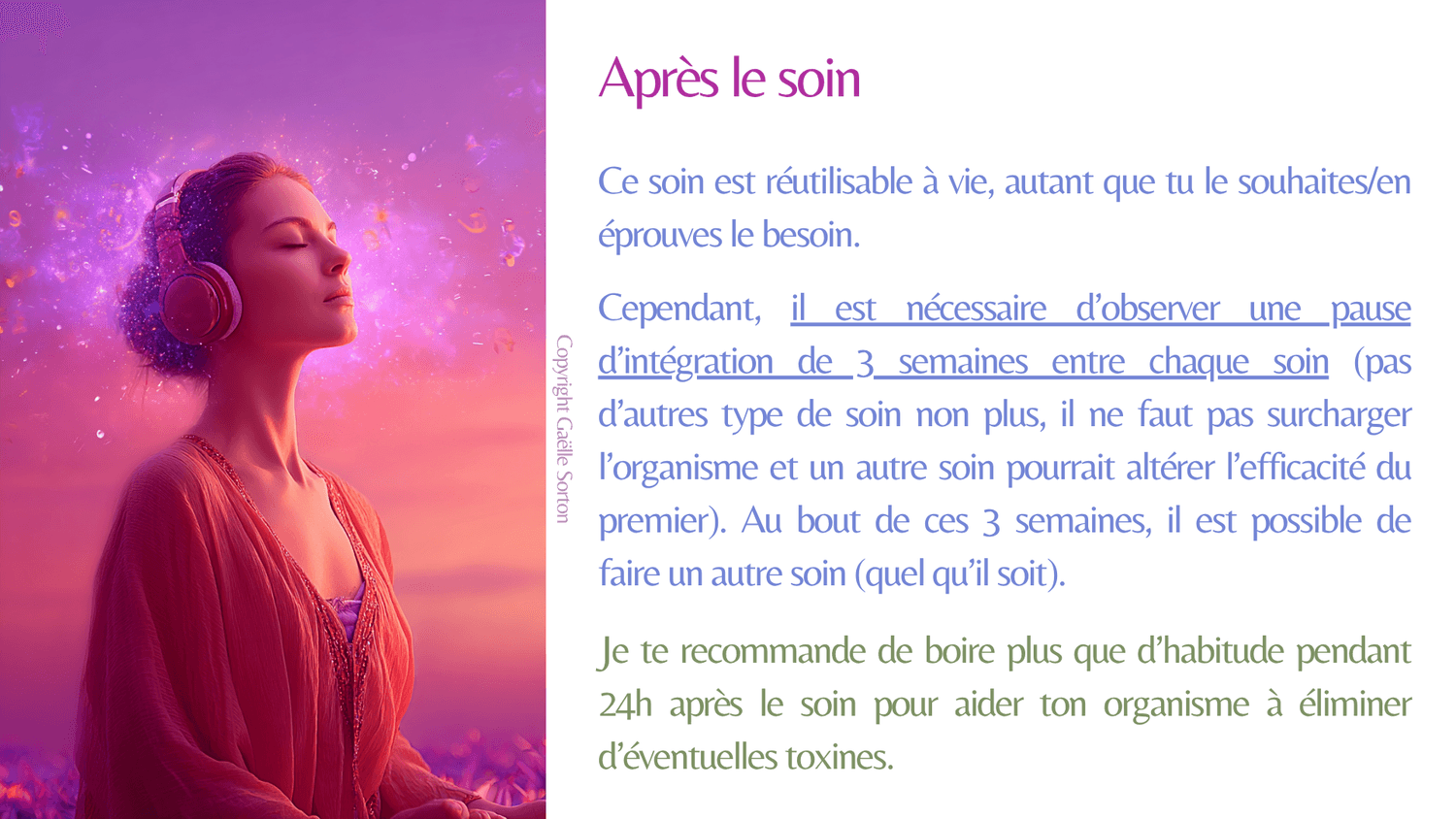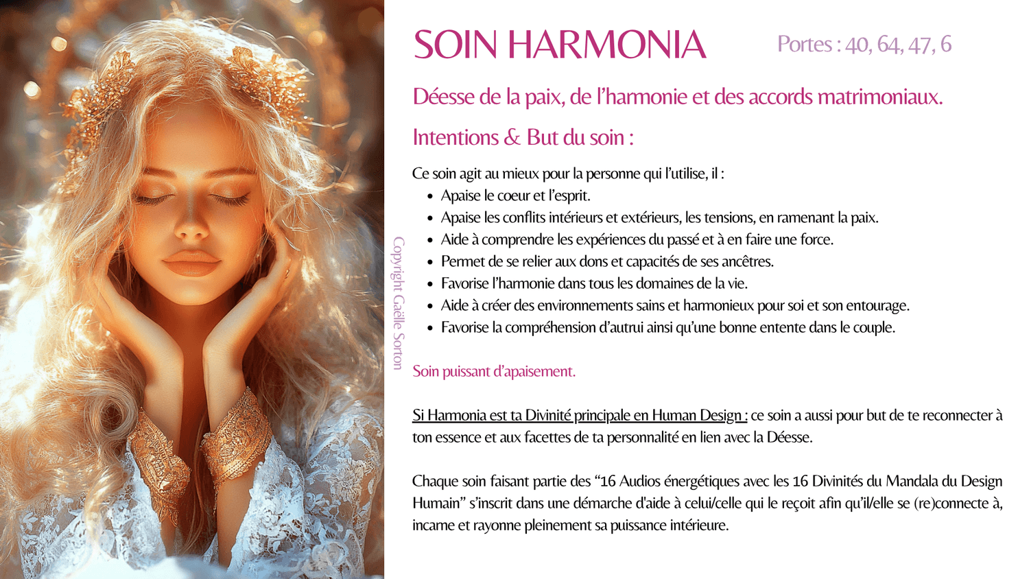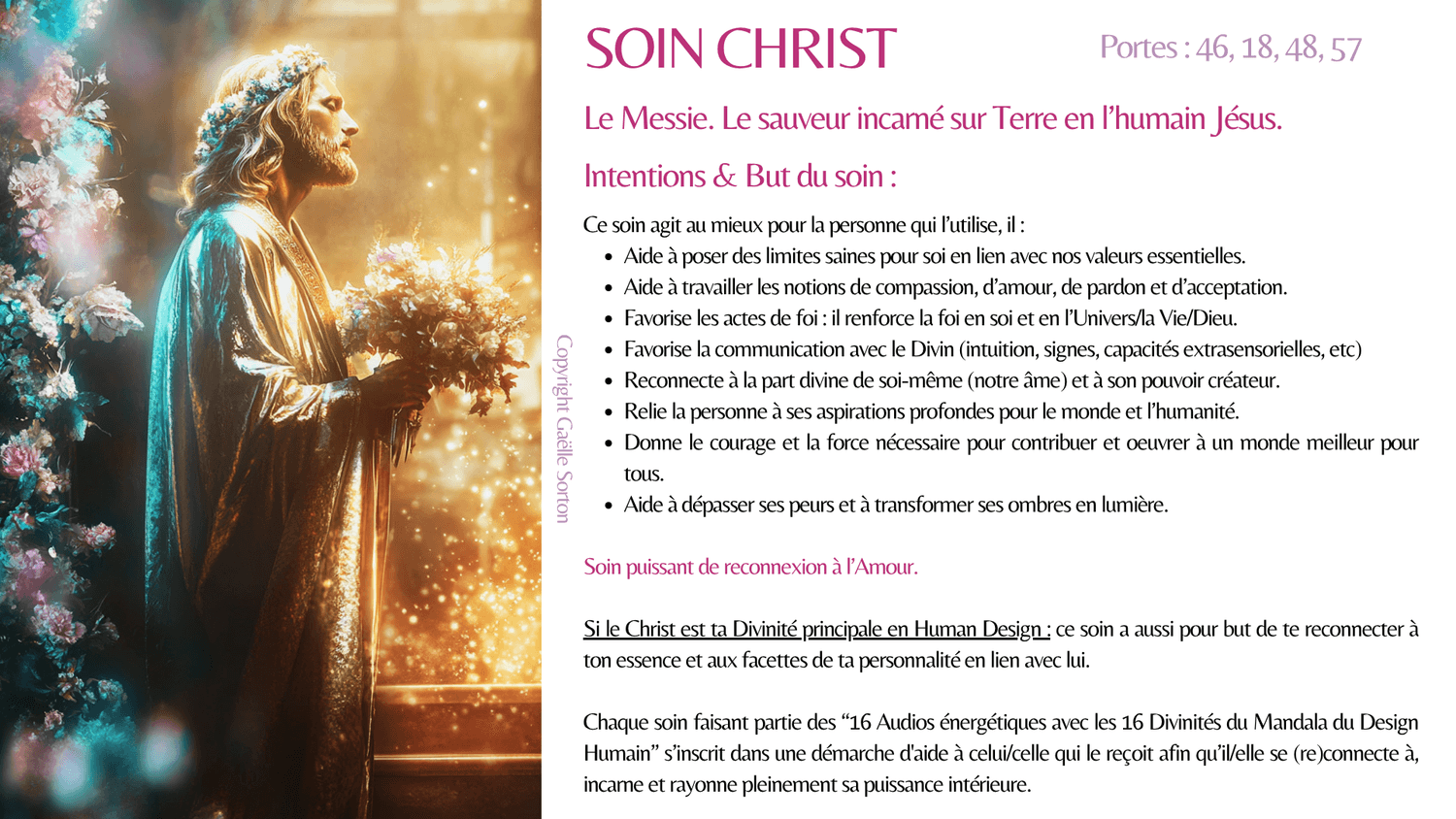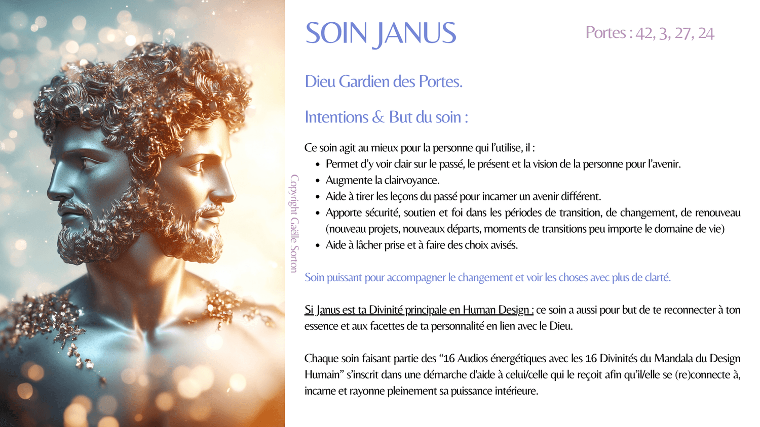 En plus des effets du soin, celui de ta Divinité principale a pour but de te reconnecter à ton essence et aux facettes de ta personnalité (forces) en lien avec elle.