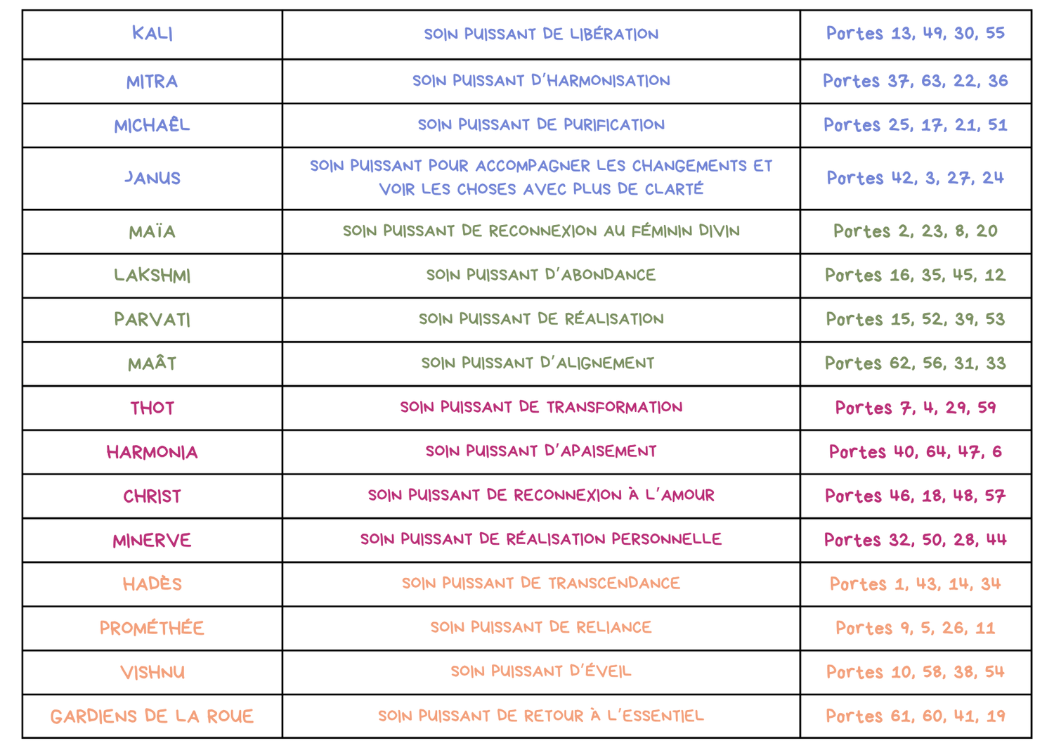 ▸ Trouve ensuite ta Divinité avec le Tableau de correspondance des Soins ci-dessous